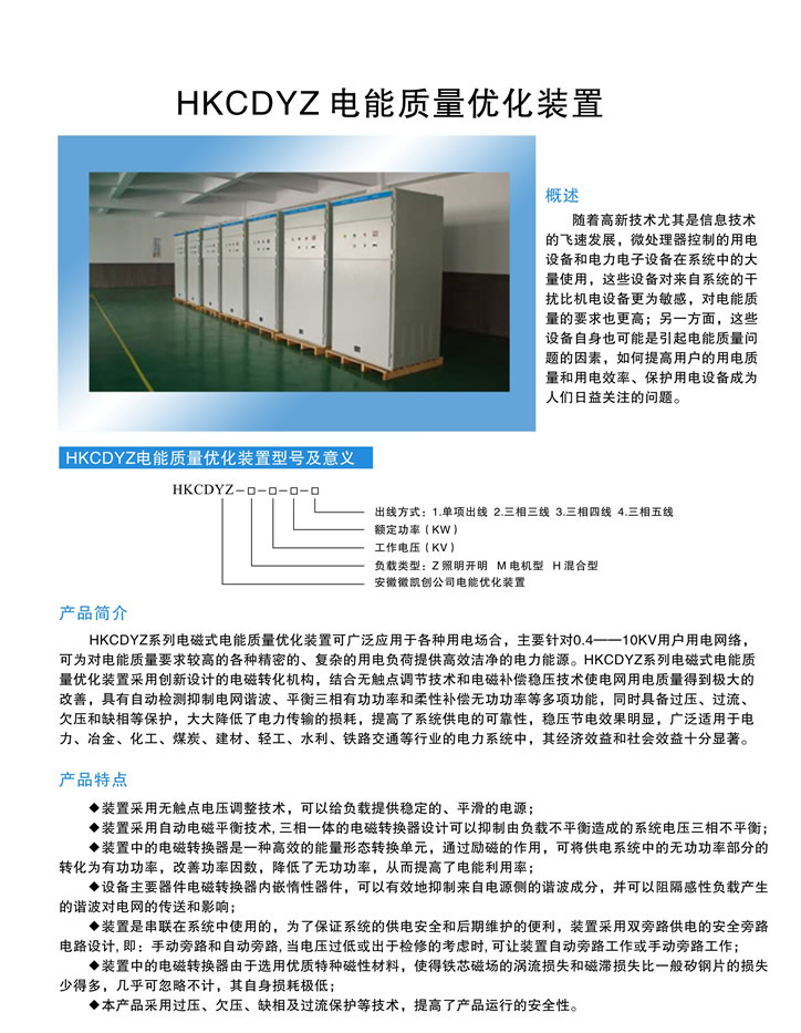 - 產品簡介:???HKC-DYZ電能質量優化裝置,安徽徽凱創電力保護設備有限公司