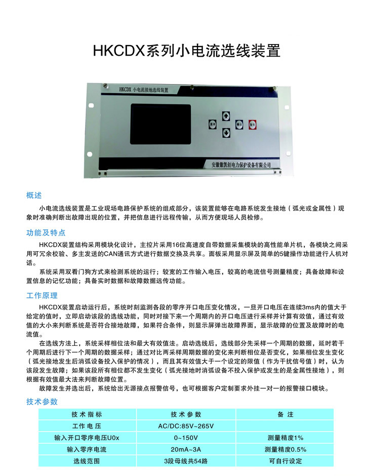 - 產品簡介:???HKCDX系列小電流選線裝置